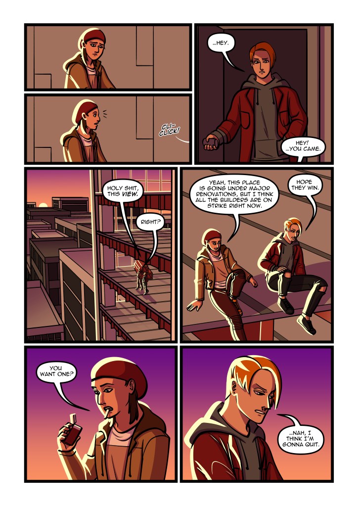 A 4-page meet-cute comic commissioned by IrishComics.ie as part of their 2024 Pride Series, with the support of DLR Arts (Dun Laoghaire-Rathdown County Council).