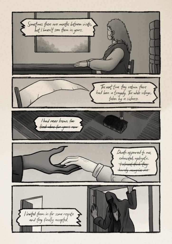 A short romance between a farmer and the spectre of death, created for my Visual Narrative uni course.